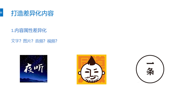 在人人都是自媒體的時代,內容的數量急劇增長,只有差異化的內容,才能在用戶的心中留下印象。差異化體現在多個方式,比如內容形式上就可以分為圖文、插畫、音頻、視頻等。