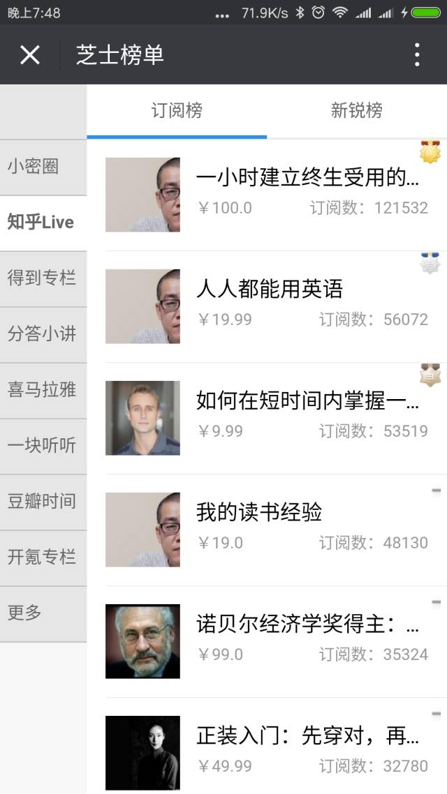 知識付費平臺:知乎、在行、分答、得到、喜馬拉雅、豆瓣時間、百度問咖、千聊、大弓、三節課等。
