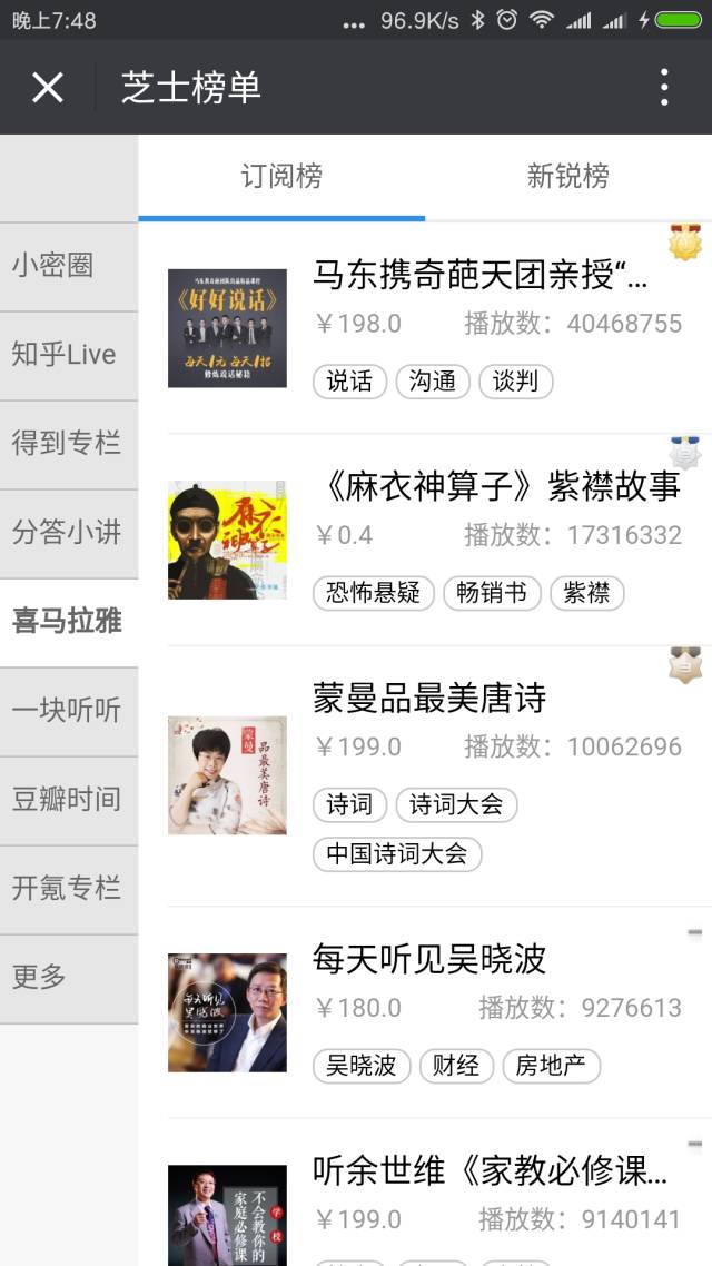 2014年羅胖推出 “史上無理” 的付費會員制,5500個會員名額半天,160萬元入賬。后來,《李翔商業內參》在 “ 得到 ” 上線,10日內獲得超過4萬用戶的訂閱量;喜馬拉雅FM內《好好說話》共計售出25731份。