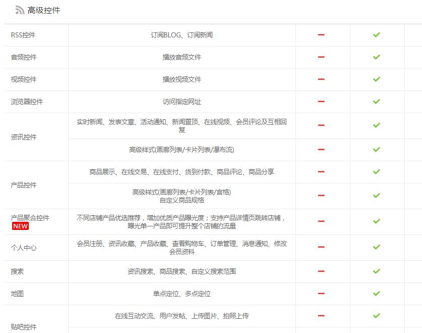 這上百個小的功能控件,進行搭配組合,就可以制作出類似58同城、天貓京東、美團、京東、頭條、貼吧類的手機APP軟件。應用公園作為開放式平臺,上面已經搭配好的成功案例、經典模板,可以直接使用。