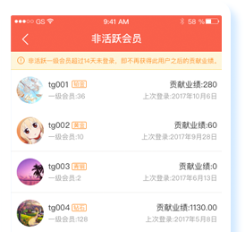 允許自定義會員淘汰機制,會員超過一定天數未登錄,則會斷開與推廣員關系不再產生返點。激勵推廣員鞏固會員關系。