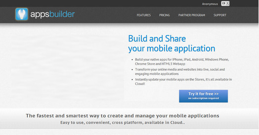 AppsBuilder 是一個跨平臺的在線開發工具,為用戶提供快速的原聲應用解決方案。AppsBuilder 可實現定制的視覺設計和實現應用跨平臺的能力,其內置插件可以將博客網站直接轉換成原生手機應用。